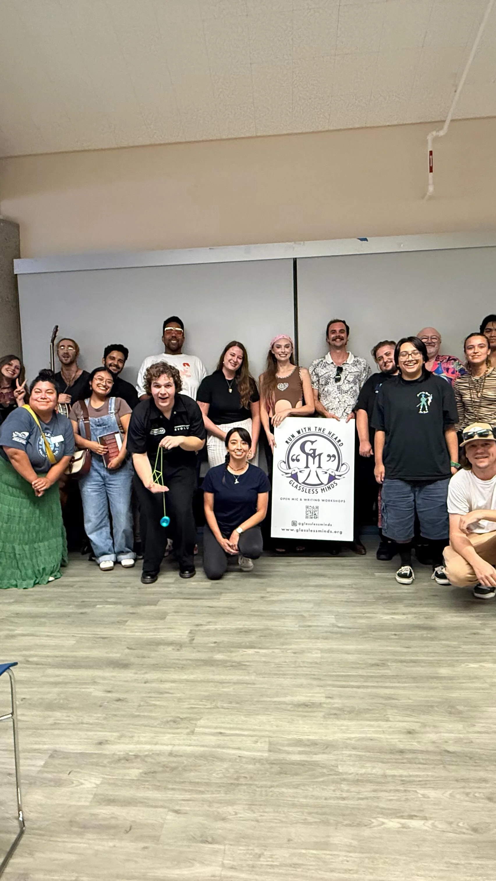 Glassless Minds Poetry Open Mic & Writing Workshop is a safe space for teenagers and adults to express themselves, be part of a supportive poetry community, and be inspired. While poetry is our heartbeat — all forms of expressive art are welcomed and celebrated at Glassless Minds.