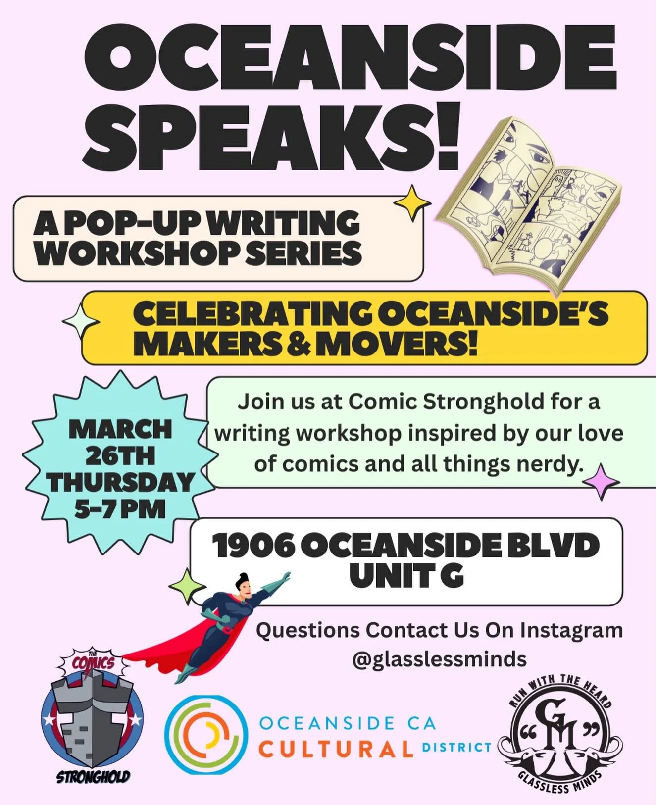 Glassless Minds Poetry Open Mic & Writing Workshop is a safe space for teenagers and adults to express themselves, be part of a supportive poetry community, and be inspired. While poetry is our heartbeat — all forms of expressive art are welcomed and celebrated at Glassless Minds.