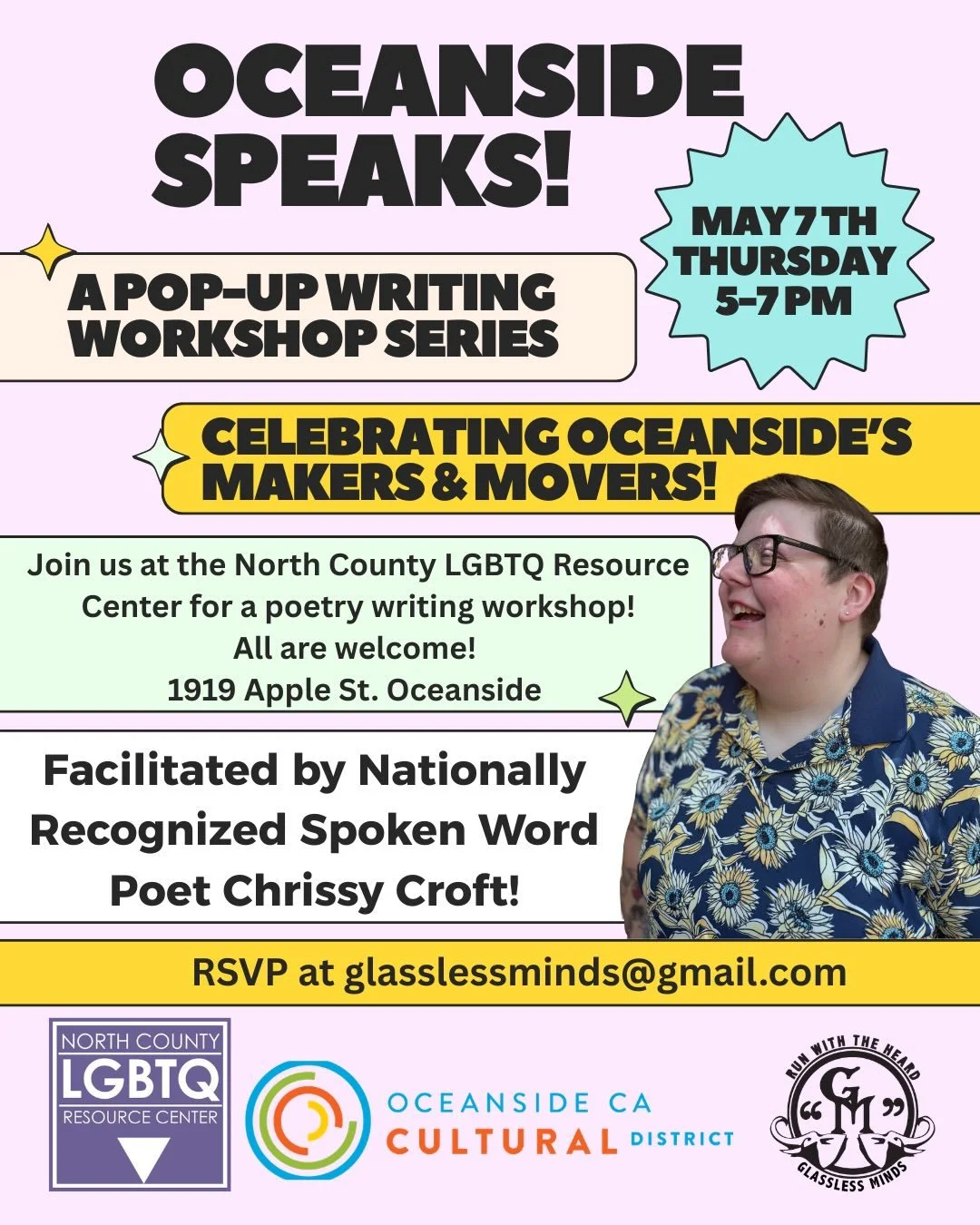 Our Monthly FREE Glassless Minds POETRY Workshop runs: